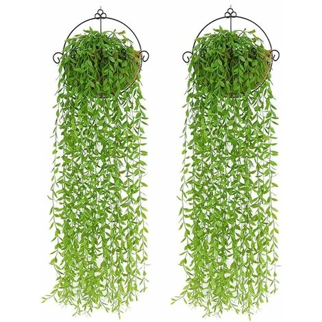 2 pezzi di piante artificiali sospese con cesto appeso di palma da cocco, piante artificiali foglie di edera salice piante in plastica, piante artificiali appese per decorazioni da parete esterne balcone giardino matrimonio da appendere decorazione di piante di vite, multi-way