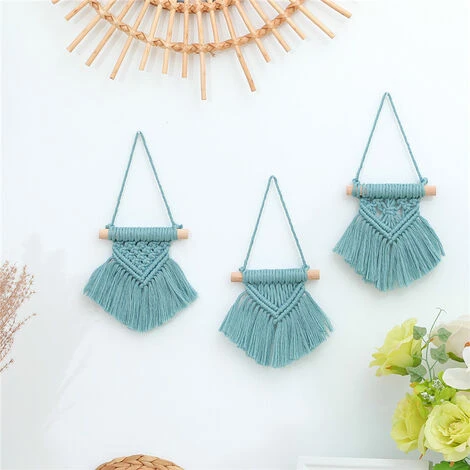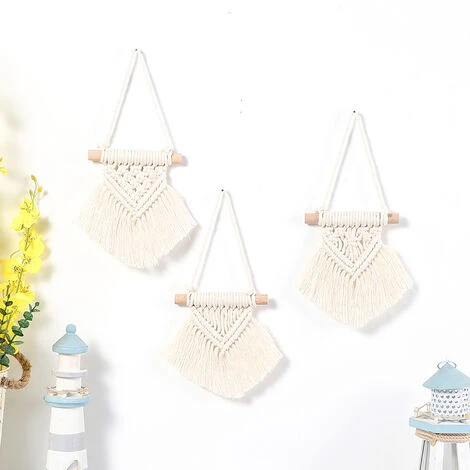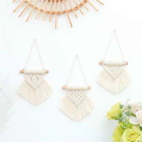 Presenta un design geometrico e un piccolo frange per aggiungere eleganza bohémien a qualsiasi stanza. APPENDE ANCHE SU UN ARMADIO DA CUCINA, abbiamo la maniglia della porta, abbiamo un atto, o abbiamo il tuo albero di Natale come ornamento, perché i ciondoli a specchio, adornano un ora con uno e molto altro ancora. Tutti i mini sono pronti per essere appesi con il filo attaccato al tassello di legno.