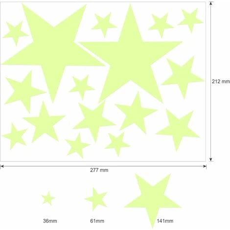 27 * Adesivi con stelle luminose (3,6 cm, 4,7 cm, 6,1 cm, 14,1 cm, 14,8 cm)