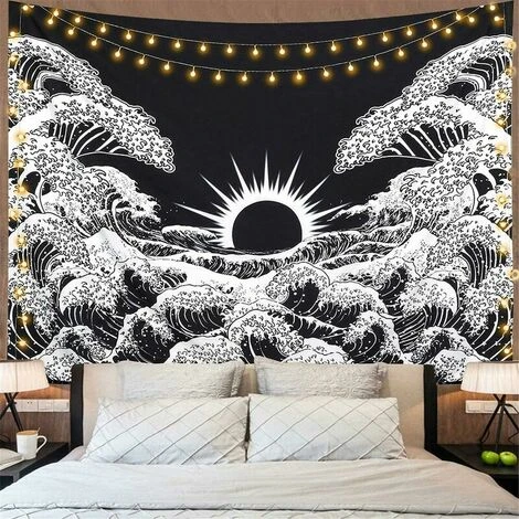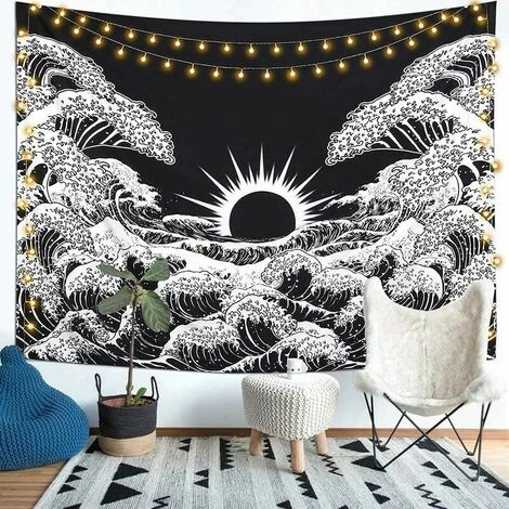 【DESIGN DEL MODELLO ATTUALE】 L’onda del mare e il sole sono stati sottilmente incorporati in questo disegno di arazzo in bianco e nero. Porterà una scioccante sensazione psichedelica a qualsiasi spazio o spazio nella tua stanza.
