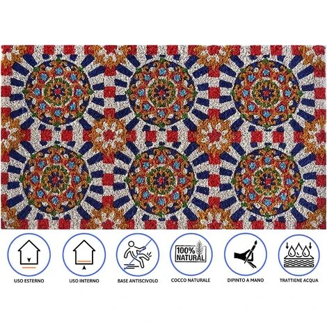 Zerbino in cocco con base in PVC Questo Baroni Home Zerbino vi fara’ iniziare la giornata con il piede giusto grazie ai suoi bellissimi disegni studiati dai designer Baroni Home . Grazie alla sua alta qualita’ e al materiale in fibra trattiene lo sporco e l’umidita’ permettendo di non sporcare la casa appena si entra.
