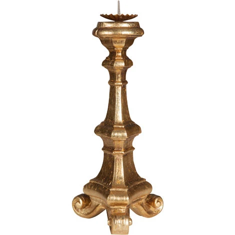 Candeliere L19XPR19XH40 cm realizzata in legno finitura foglia oro. Accuratamente lavorato e rifinito da vecchi artigiani Fiorentini. Ideale per arricchire e decorare qualsiasi ambiente. Articolo interamente realizzato in Italia.