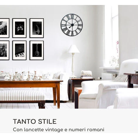 L’orologio da parete con numeri romani Queensway di Casa Chic by blumfeldt regala a ogni ambiente interno un’atmosfera particolarmente accogliente. L’elegante struttura in metallo dotata di lancette vintage lo rende perfetto per qualsiasi spazio, dal soggiorno di casa, all’ufficio, a un accogliente caffè o ristorante. La combinazione delle lancette in metallo leggero e il movimento al quarzo di alta qualità permettono un cronometraggio preciso e silenzioso. Grazie all’assenza di ticchettii, l’orologio è perfetto anche per l’uso in camera da letto.