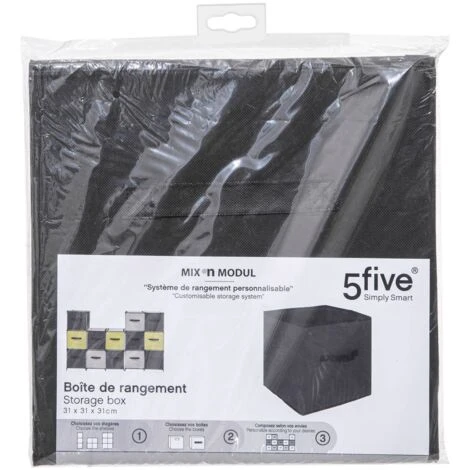 Scatola portaoggetti, nera, polipropilene e cartone, dimensioni 31x31x31 cm