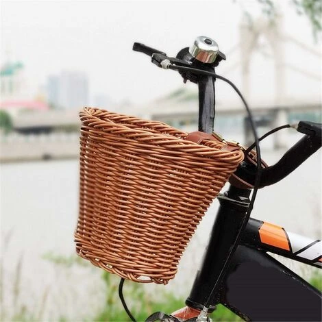 Cestello per bici – Cestini per bici retrò fatti a mano, cestino medio tradizionale con cestello anteriore e cinghie in pelle, cestino per bici in vimini per bambini