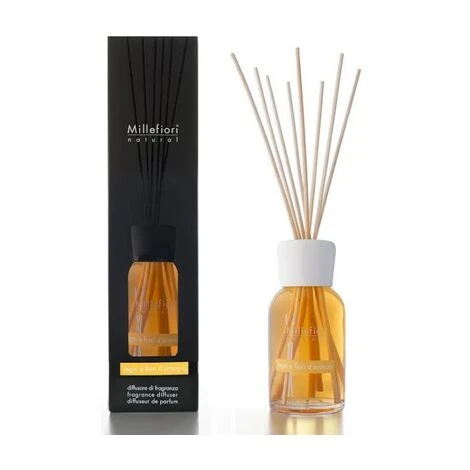 Diffusore Stick Natural Legni e Fiori d’Arancio Millefiori 250ml Diffusori a bastoncino Una soluzione che si integra con stile e discrezione in ogni ambiente regalando una profumazione delicata e duratura. La fragranza viene profusa attraverso i bastoncini che, immersi nel liquido, la assorbono e la rilasciano verso l’alto in modo costante.
