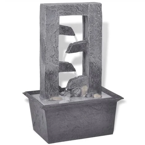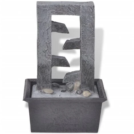 Questa fontana da interno con LED è un’eccellente scelta per aggiungere un’atmosfera naturale al vostro spazio abitativo. Questa fontana a effetto cascata sarà un complemento per qualsiasi arredamento. Ha un illuminazione a LED, che dona un sorprendente effetto visivo, soprattutto di notte. Realizzata in poliresina, è resistente ai raggi UV, significa cioè che manterrà il suo aspetto originale e i colori anche quando verrà posta sotto la luce diretta del sole. Multipli flussi di acqua che scorrono creando un suono rilassante e un’atmosfera riposante e meditativa. La pompa di alta qualità assicura un funzionamento sicuro e affidabile. Questa fontana, completamente autonoma, può essere collocata in qualsiasi punto della casa.