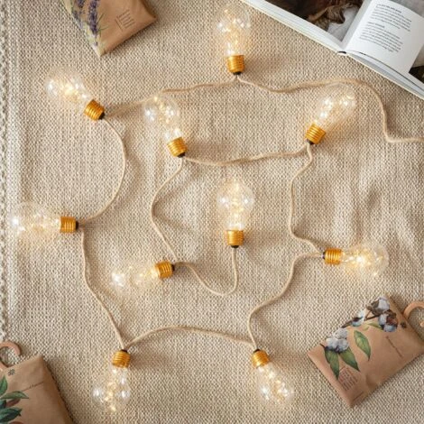 Incorpora un totale di 50 luci LED all’interno di lampadine decorative trasparenti. Questa ghirlanda è lunga 2 metri ed è fabbricata di sparto. Si collega con tre batterie AA ed è perfetta per decorare qualsiasi angolo della casa.