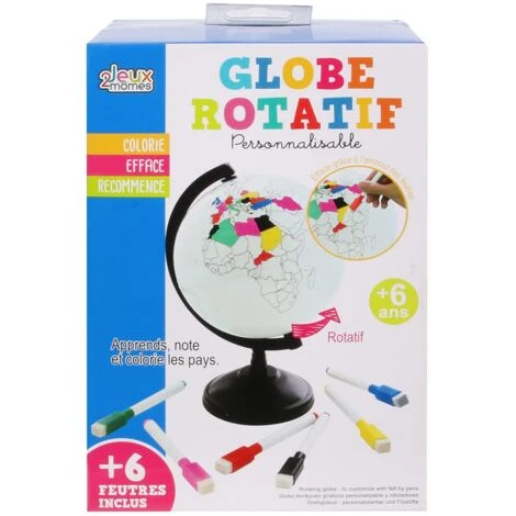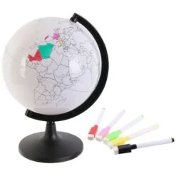 Scoprite i paesi e i continenti in modo divertente grazie a questo mappamondo rotante da personalizzare! – Pennarelli inclusi – 22 cm