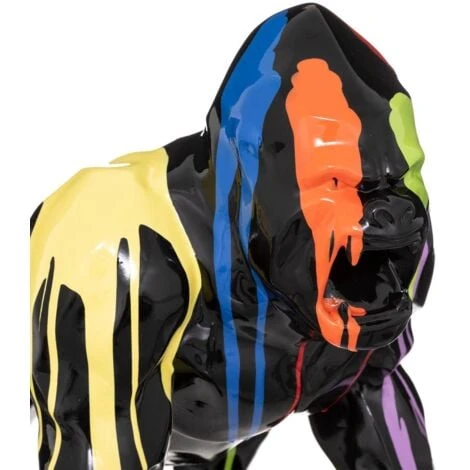 Gorilla decorativo in resina nera e dipinto trash h40cm