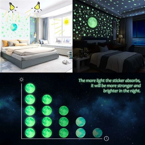 - 【Adesivi che si illuminano al buio】:Riceverai 27 adesivi a forma di stella luminoso, 407 punti pezzo, 1 luna luminosa di 30 cm