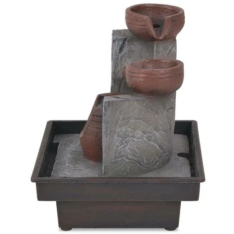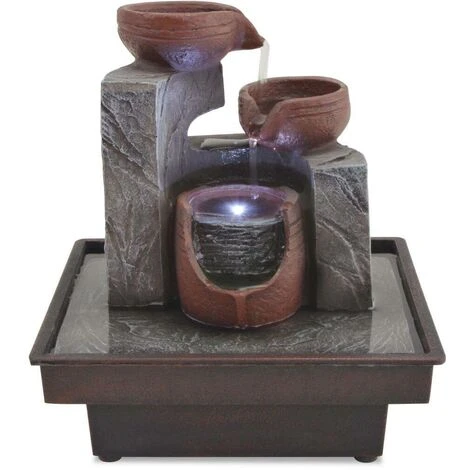 Questa fontana per interni a LED è una scelta eccellente per creare un ambiente sereno nella vostra abitazione. La fontana è realizzata in poliresina. La cascata d’acqua è illuminata con luci a LED che creano uno spettacolare effetto visivo, specialmente di notte. I multipli flussi d’acqua e il suono rilassante dell’acqua che scorre creano un’atmosfera rilassante e che induce alla meditazione. La pompa inclusa, di alta qualità, garantisce un funzionamento sicuro e affidabile. Questa fontana, completamente autonoma, può essere collocata in qualsiasi punto della casa.
