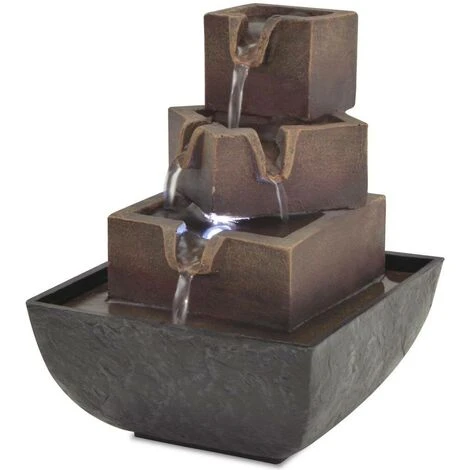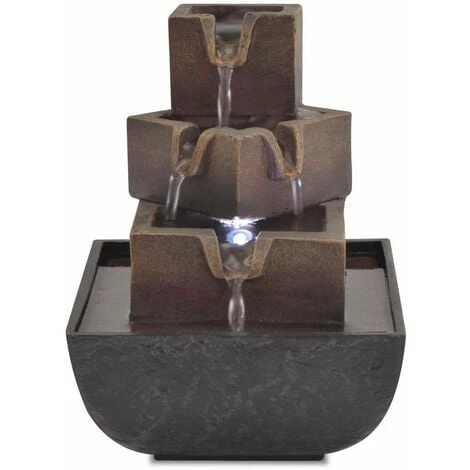 Questa fontana per interni a LED è una scelta eccellente per creare un ambiente sereno nella vostra abitazione. La fontana è realizzata in poliresina. La cascata d’acqua è illuminata con luci a LED che creano uno spettacolare effetto visivo, specialmente di notte. I multipli flussi d’acqua e il suono rilassante dell’acqua che scorre creano un’atmosfera rilassante e che induce alla meditazione. La pompa inclusa, di alta qualità, garantisce un funzionamento sicuro e affidabile. Questa fontana, completamente autonoma, può essere collocata in qualsiasi punto della casa.