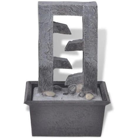 Questa fontana da interno con LED è un’eccellente scelta per aggiungere un’atmosfera naturale al vostro spazio abitativo. Questa fontana a effetto cascata sarà un complemento per qualsiasi arredamento. Ha un illuminazione a LED, che dona un sorprendente effetto visivo, soprattutto di notte. Realizzata in poliresina, è resistente ai raggi UV, significa cioè che manterrà il suo aspetto originale e i colori anche quando verrà posta sotto la luce diretta del sole. Multipli flussi di acqua che scorrono creando un suono rilassante e un’atmosfera riposante e meditativa. La pompa di alta qualità assicura un funzionamento sicuro e affidabile. Questa fontana, completamente autonoma, può essere collocata in qualsiasi punto della casa.