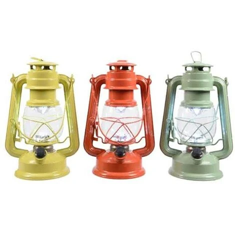 Lanterna Dimensione: 24 cm – 15 L Funzionamento con 2 batterie D non incluse Luce calda Funzionamento LED: circa 30 ore Bulbi non sostituibili Colore: verde/giallo/rossoarancio