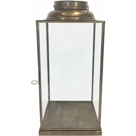 cm 18 x 18 x 33,5 hLanterna OTTONE ANTICO in acciaio e vetro