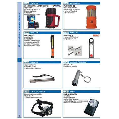 MOD. FIREFLY-150 CORPO IN ABS ANTIURTO. INTENSIT LUCE 200 LUMEN 3 BATTERIE AA INCLUSE AUTONOMIA 4 ORE