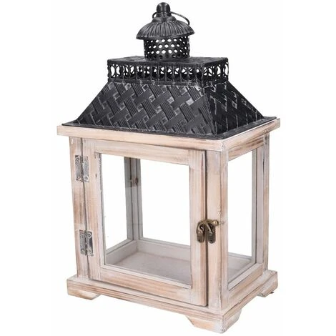 LANTERNA LEGNO SBIANCATO RETTANGOLARE CO N TETTO NERO CM24X16H39