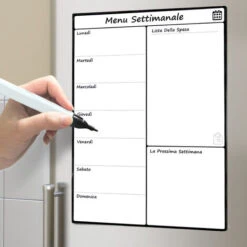 CONTENUTO DELLA CONFEZIONE:1 x Lavagna Magnetica Bianca 43×30 in Alluminio Frigorifero Pennarelli Cancellabili