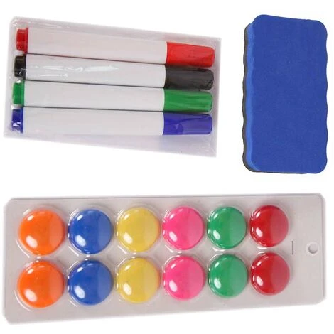 Incluso nella confezione troverai ben 4 pennarelli colorati cancellabili con l’apposito cassino per scrivere e cancellare tutte le volte che vorrai sulla lavagna e 12 magneti da poter applicare e utilizzare con facilità sulla lavagna per attaccare appunti foto e tutto ciò che vorrai.