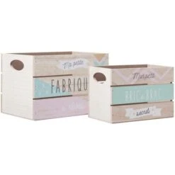 Set di 2 cassette stampate, legno, dimensioni S: 24,1x15x16,8 cm M: 30x20x20 cm