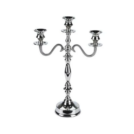 CANDELIERE IN ALLUMINIO EFFETTO ARGENTO LUCIDO A 3 POSTI IDEALE PER DARE UN TOCCO CLASSICO AL VOSTRO LIVING.