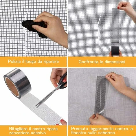 Il nastro adesivo ripara le zanzariere appiccicose, resistente e non facile da staccare, forte adesione, buona trasmissione della luce e buona permeabilità all’acqua.</ p>
