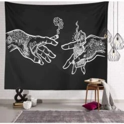 Arazzo Floreale Medaglione Mandala, Arazzo Da Parete Bohemien Botanico Floreale Schizzo