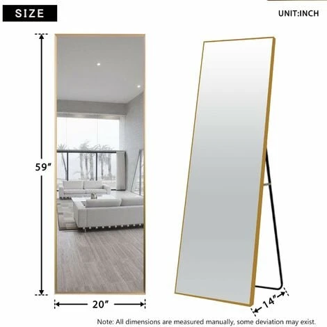 NeuType Premium Specchio a Figura Intera con Supporto Colore: Oro Materiale: vetro e telaio in lega di alluminio Dimensioni: 150×50 cm Come usare: in piedi, appoggiato al muro o montato a parete Benefici: Qualità e sicurezza con vetro di alta qualità e telaio in lega di alluminio al 20%. Alta definizione. Prevenzione della dispersione e membrana antideflagrante, a prova di scoppio. Multiuso per stare in piedi, appoggiato al muro o montato a parete.
