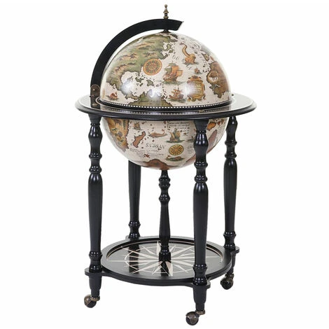 Mini bar portabottiglie mappamondo elegante a carrello con ruote modello HWC-A78 legno di eucalipto Questo stravagante mini bar è grazioso e molto decorativo,inoltre al suo interno offre spazio a sufficienza per diversi bicchierie bottiglie.L’esterno è decorato con un’antica mappa del mondo, mentre sul bordo internoè raffigurato un dipinto decorativo.L’aggiunta del ripiano inferiore permetterà di avere una maggiore sceltadi bottiglie a portata di mano.L’ultimo particolare da non trascurare sono le ruote, le quali renderannoestremamente facile e pratico spostare il minibar da una stanza all’altra! facile da montare esterno decorato con una rappresentazione del mondo antico bordo interno con dipinto decorativo con ripiano inferiore per avere più scelta a portata di mano può contenere bottiglie di altezza massima 27cm copertura girevole con 4 ruote telaio e supporto in legno di eucalipto mappamondo con rivestimento in plastica portabottiglie in MDF dimensioni mini bar chiuso (ca.):altezza: 95cmlarghezza: 57cmprofondità: 57cmaltezza massima bottiglie: 27cm dimensioni mini bar aperto (ca.):altezza: 110cmlarghezza: 57cmprofondità: 78cm ordinabili anche altri mini bar in stile elegante (vedi altre offerte, salvo disponibilità).