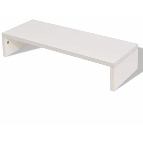 Questo pratico supporto per monitor con un design minimalista, aggiungerà un tocco moderno al vostro arredamento. Questo supporto per computer può essere utilizzato come supporto per la TV o come alzata per il monitor o altri dispositivi multimediali. Alzare lo schermo ridurrà la tensione sul collo o sulla schiena. I due scomparti sottostanti possono alloggiare la tastiera, il lettore DVD, la console di gioco, i dispositivi di streaming, i ricevitori, i supporti multimediali, ecc. Realizzato in truciolato, questo supporto per lo schermo è robusto e resistente nonché elegante. Tutte le superfici sono facili da pulire. Il montaggio è facile.