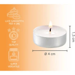 Tea Light Candele Candeline Tealight Inodore 100 Pz Bianca Candela Made In Italy