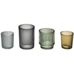 Set Di 4 Portacandele In Vetro Con Vassoio In Legno – Atmosphera Créateur D’intérieur