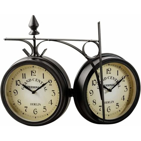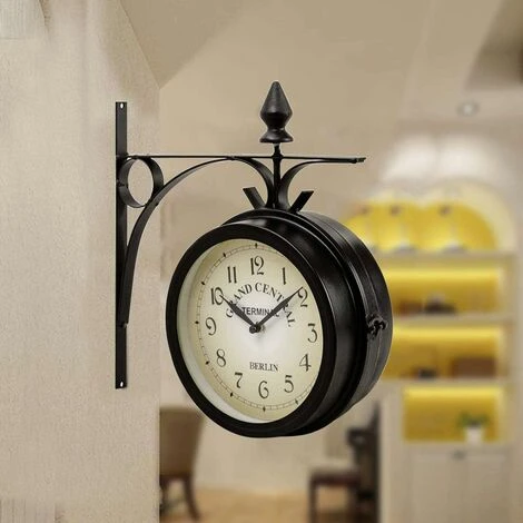 Design classico: L’orologio da parete a due lati dal design classico e retrò è realizzato in metallo con finitura nera opaca.