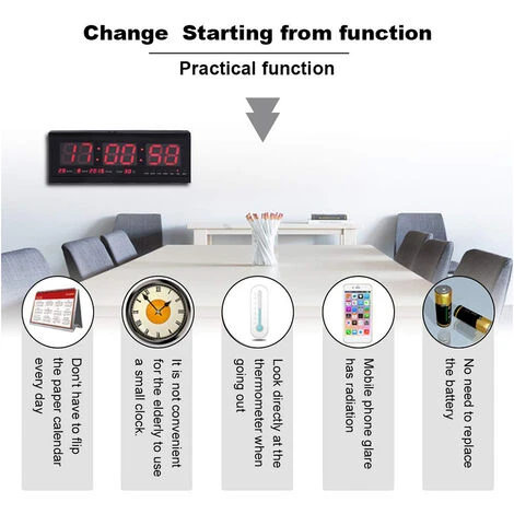 Prodotto grazie al quale avrete sempre sotto controllo orario, data, temperatura e il giorno della settimana corrente. Grazie alle grandi dimensioni del display puó essere utilizzato in casa, nei negozi o in luoghi pubblici.