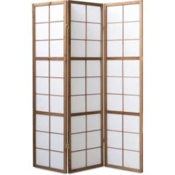 3 pannelli, Paravento pieghevole e leggero, cerniera bidirizionale. Materiale e colore: Legno inquadramento marrone scuro , carta di riso bianca. Dimensioni: Altezza: 175 cm Larghezza: 132 cm Profondità: 2,2 cm Larghezza per pannello 44 cm