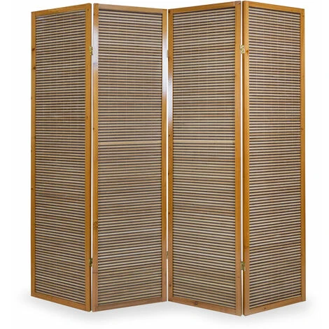 4 pannelli , Paravento pieghevole e leggero .Materiale: Legno marrone scuro , Materiale interno: bambù. Dimensioni: Altezza: 175 cm Larghezza: 175 cm Larghezza per pannelli 44 cm
