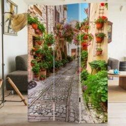 1 x Paravento Separé 3 Pannelli Con Stampa Fronte Retro Paesaggio Divisorio 180×120