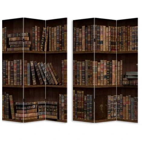 1 x Paravento Separé 3 Pannelli Stampa Fronte Retro Libreria Antica Divisorio 180×120