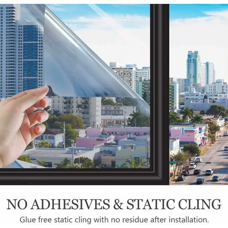 【Protezione ambientale e materiale di alta qualità】 Realizzato con materiali PET di alta qualità per flessibilità e lunga durata. Il design senza colla riduce il rilascio di sostanze chimiche, puoi strappare la pellicola solare in qualsiasi momento, nessun residuo di adesivo rimane sulla superficie del vetro.La robusta pellicola a specchio è resistente ai graffi, allo sporco e facile da pulire con un detergente per vetri.