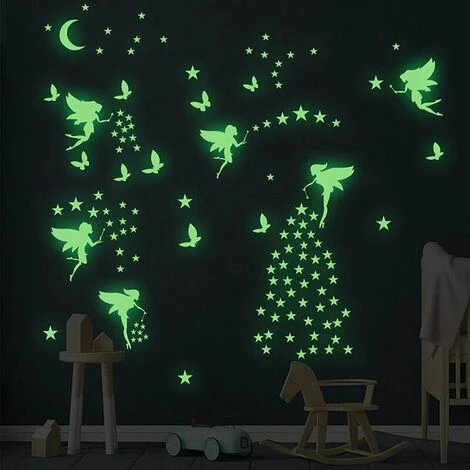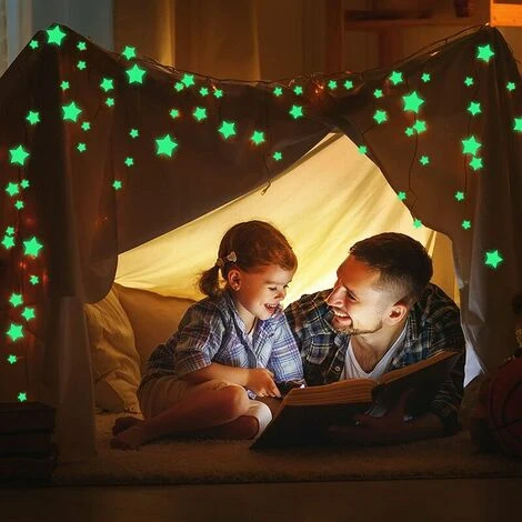NOTA: gli adesivi dovrebbero assorbire abbastanza luce (luci o luce solare) per brillare al buio. Si prega di pulire le pareti prima di incollare. Gli adesivi luminosi sono facili da applicare e rimuovere.