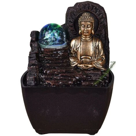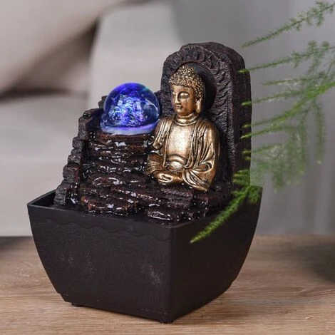 Piccola fontana in resina per interni con Buddha Theravada a LED