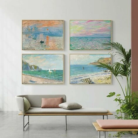 1 【Significato del nostro dipinto】 L’impressione dell’alba raffigura la scena del porto dell’alba nella nebbia mattutina dal cambio di luce. Una tale arte murale su tela incorniciata sarà una buona scelta se collocata nel tuo salotto o come regalo per i tuoi amici. Set di tre pezzi.
