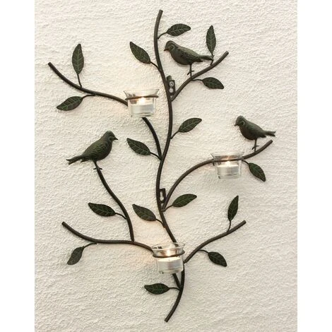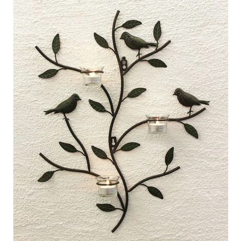 Luci a parete Porta luci da tee Uccello. – fantastica decorazione a parete con posto per 3 luci da tee. Completo con verniciatura antiruggine e smalti di alta qualità. – Dimensioni: Alt. ca 57cm, larg. ca 25cm, prof. ca 9cm. Colore: Marrone-scuro antico.