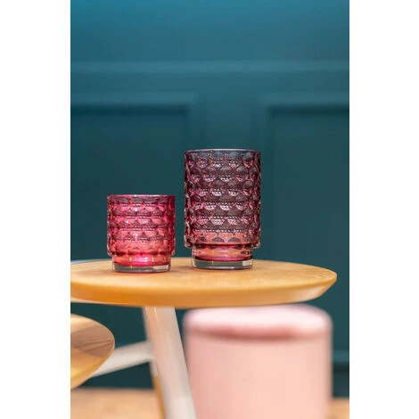 Portacandele in vetro rosa.