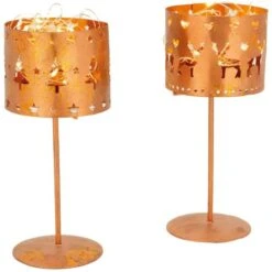 Portacandele natalizio su supporto in metallo ramato (Set di 2)