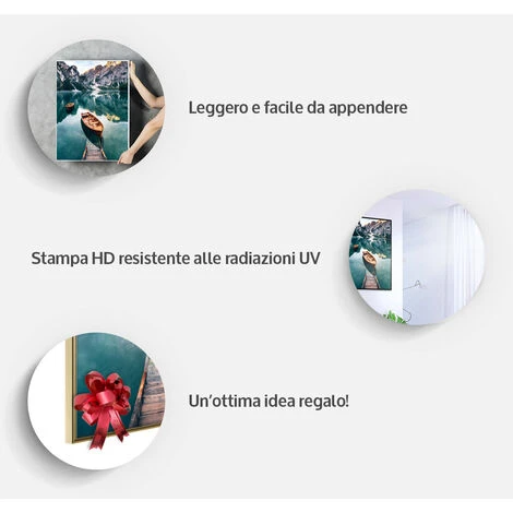 Il poster incorniciato può essere fissato con l’uso dell’attacco in dotazione o, qualora non vogliamo o non possiamo forare le pareti, è talmente leggero che può essere fissato sul nastro di montaggio o posizionato sul pavimento o sui mobili e appoggiato con nonchalance al muro! Effetto design garantito!