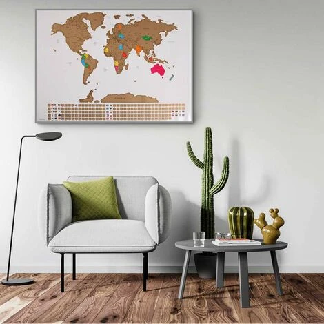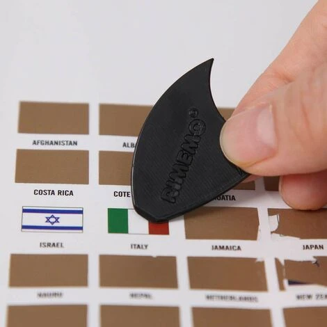 Ogni stato e bandiera che compone questo bellissimo mappamondo può essere grattato, permettendoti di evidenziare con colori diversi tutte le città e nazioni che hai visitato durante i tuoi viaggi.