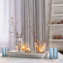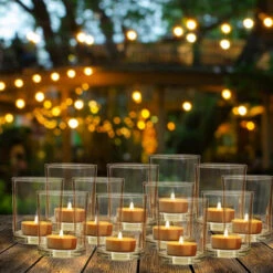 Relaxdays Set 12 Portacandele In Vetro, Design Decorativo Per Centrotavola E Bagno, Blu Bianco