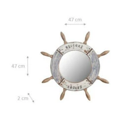 Specchio Specchiera Da Parete E Appendere A Forma Di Timone In Legno Massello Diam.L47xPR2 Cm.